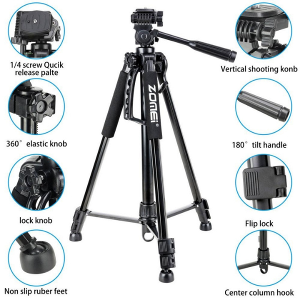 Zomei BJ-1200 Professional Tripod For DSLR Camer, Mobile, Action Camera, 61 Inch Height